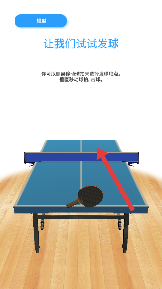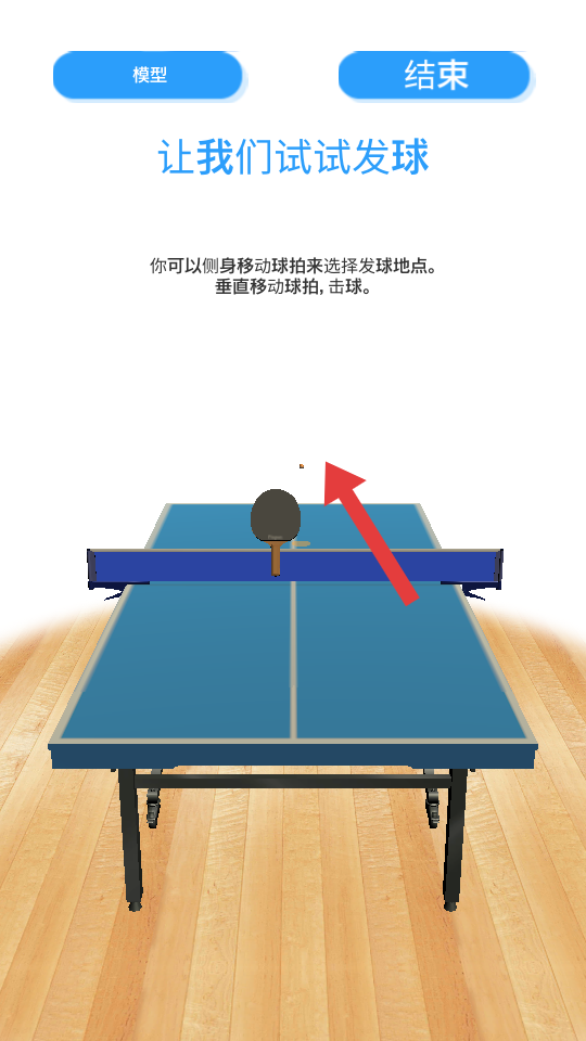 1、在乒乓球游戏发球环节,按操作引导移动球拍至合适位置选择发球点,确定后完成发球操作。