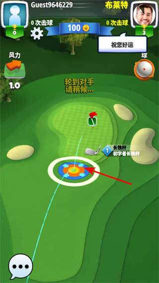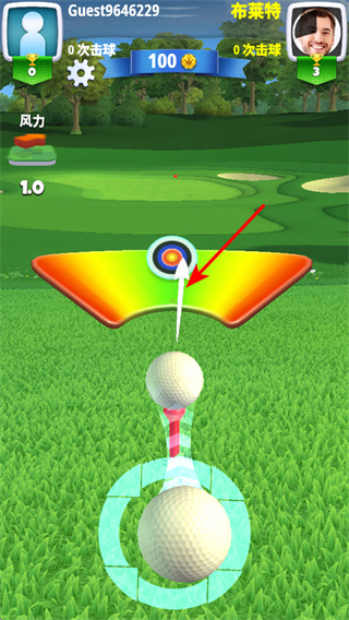 3、观察场地与风力,在对战场景中,观察高尔夫场地的地形和风力情况,为击球做准备。