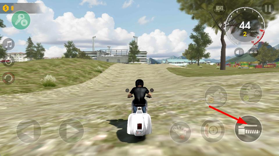 1、点击右侧箭头指向的油门按键,可提升摩托车行驶速度,助力在赛道上快速前进,把控速度以适应路况。