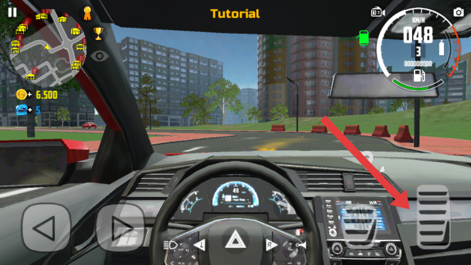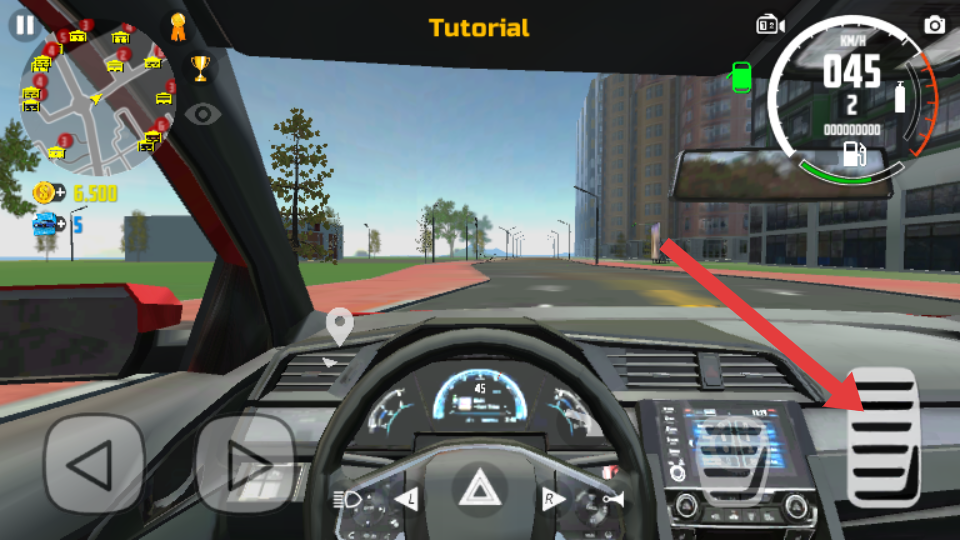 3、场景探索与资源获取,在城市道路行驶时,留意地图上的金币标记点,点击右侧油门行驶可获取金币奖励。