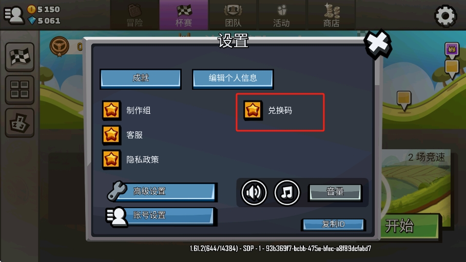 2、在游戏设置页面中非常的一目了然,并且还可以直接在这里查看到兑换码点击进入;