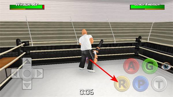 4、在与对手的交锋中,点击A按键,可发动攻击动作,对倒地的对手造成伤害,推进进程。