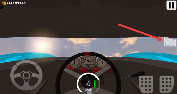 4、在驾驶过程中可以点击右侧摄像图标按钮,切换驾驶视角进行游玩,完成赛道比赛任务。