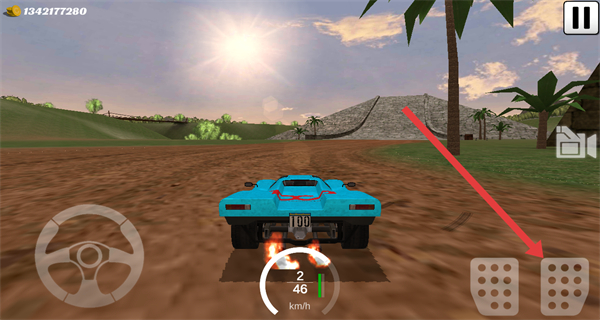 3、在驾驶界面,通过点击右侧按钮操控车辆的加速、减速等动作,点击左侧方向盘控件控制车辆方向驾驶赛车。