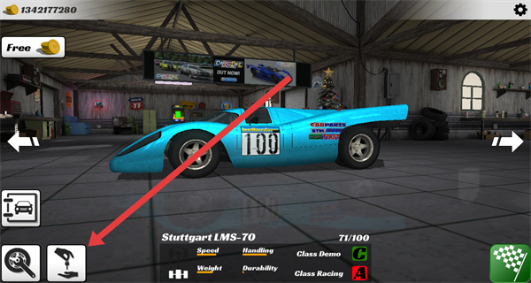 1、在车库界面,点击左下角的钥匙图标,进入赛道选择界面。