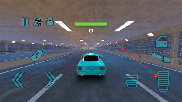 2、通过左右按键调整车辆方向,点击加速键提升车速,在隧道赛道前进。