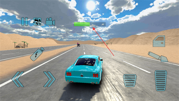 3、保持车辆沿道路行驶,收集道具维持状态,积累里程数值。