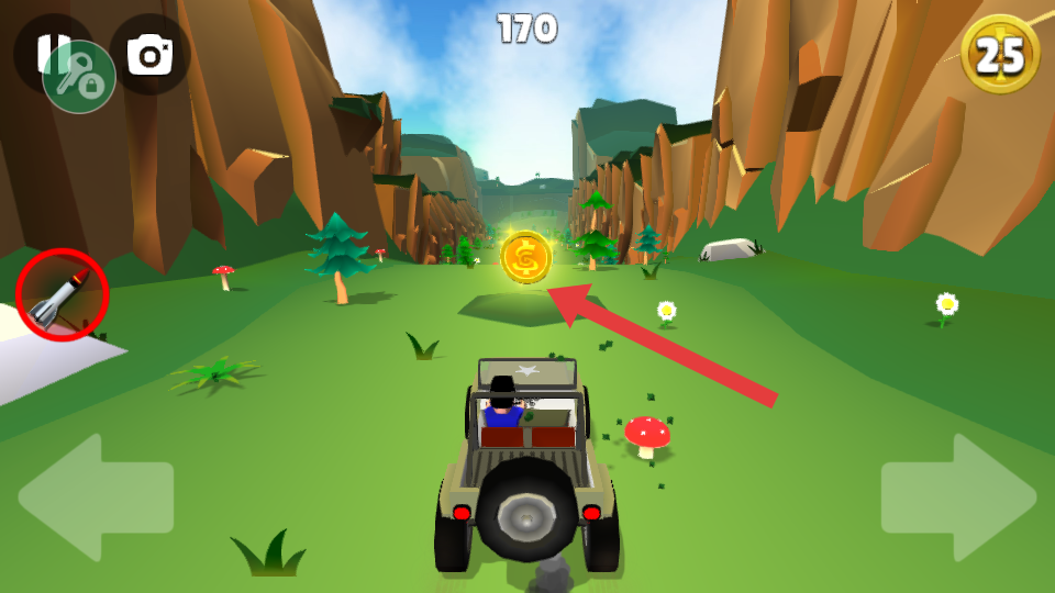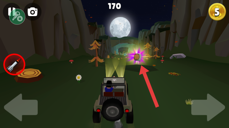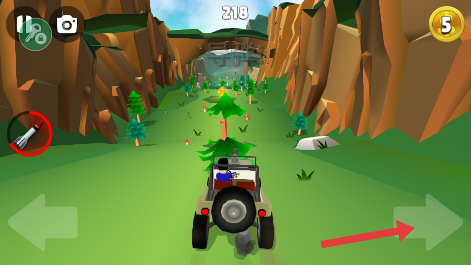 2、核心驾驶与闪避:长按左右方向键控制车辆转向,提前预判障碍物位置调整路线,途中收集金币与道具,避免撞上树木、岩石障碍,能延长行驶距离。