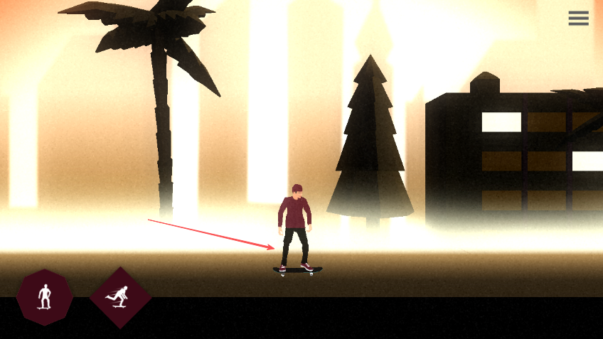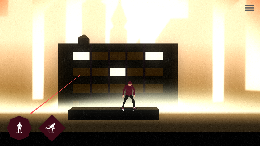 2、画面左下角有两个操作按钮,左边的按钮用于控制角色站立或进行基础动作,右边的按钮用于做出滑行特技动作。