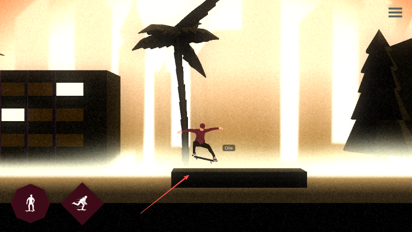 3、利用这两个按钮的组合,控制角色在不同的平台和地形上做出各种滑板技巧,比如在平台边缘做出滑行动作。