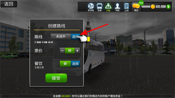 2、在运营中规划巴士路线,路线规划是保障运营的核心步骤,规划后可确定巴士的行驶路径,为乘客运输盈利奠定基础。