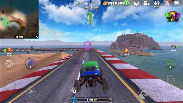 4、驾驶车辆穿过紫色圆环,完成赛道阶段的目标,推进游戏进程。