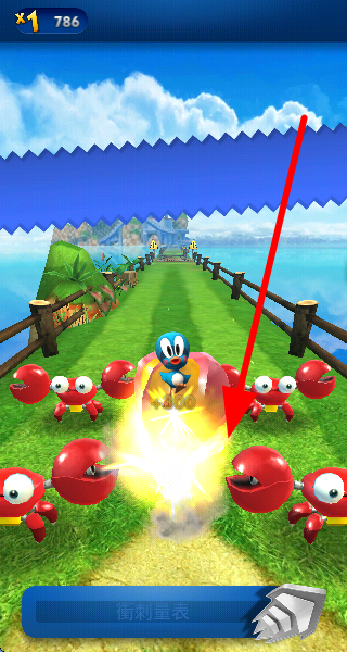4、碰到敌人阻拦,利用冲刺技能,快速向前冲,撞开敌人,继续在跑道上驰骋,获取更高分数。