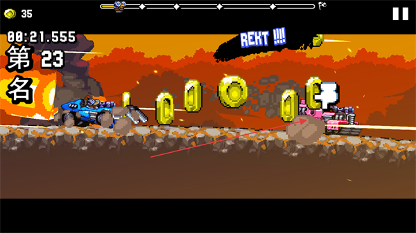 2、与其他赛车竞争,超越对手,触发REKT!!!特效,积累金币。