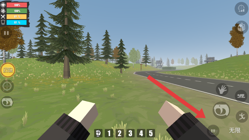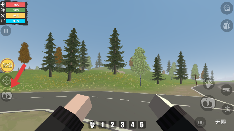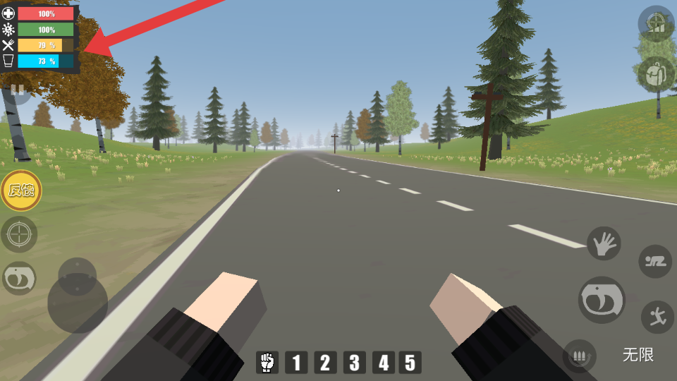 1、进入游戏后,优先查看屏幕显示的生命值、饱食度、口渴度等状态,若饱食度或口渴度偏低,立即在周边场景搜索浆果。