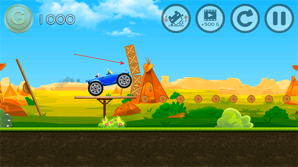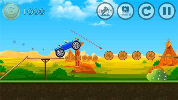 2、利用赛道上的坡道如木杆、木桩搭建的斜坡,让赛车飞起,越过障碍物如木轮。