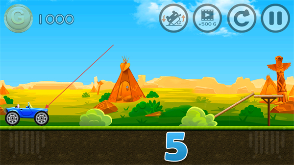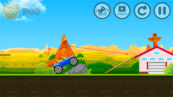 1、操控蓝色赛车在赛道上行驶,通过点击屏幕控制赛车前进速度和方向,应对不同地形如沙漠。