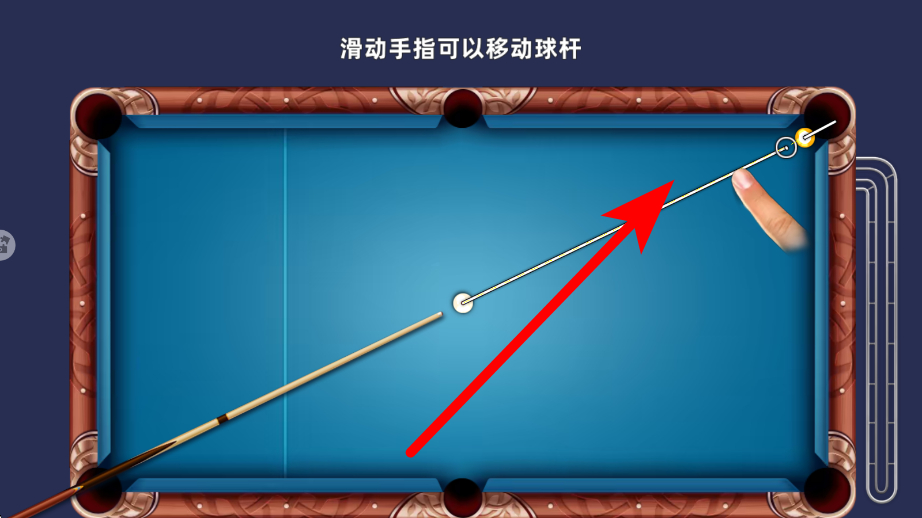 1、新手玩家移动球杆时,通过滑动手指来移动球杆,调整球杆的位置,为后续的击球操作做好准备,以便精准击打台球。