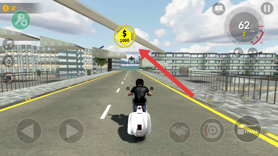 2、在行驶过程中,留意路面上标注$1000的金钱标识,驾驶摩托车靠近并触碰,即可收集该笔金钱,积累游戏内资源。