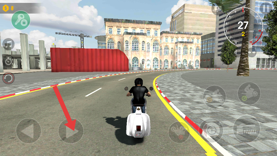 1、进入游戏后,通过操控方向键或滑动屏幕控制摩托车转向,避免与城市街道上的其他车辆发生碰撞,确保行驶安全。