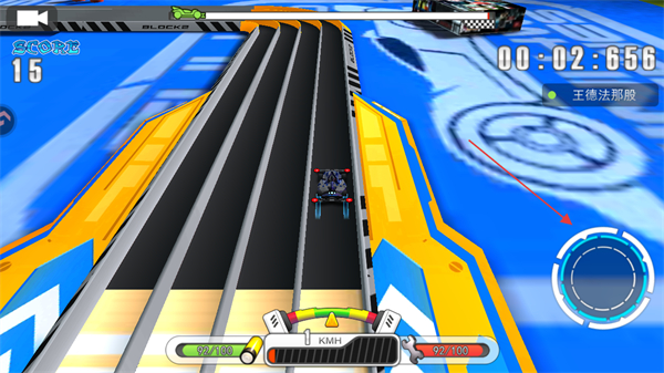 3、在赛场上右下角的轮盘可以控制赛车的速度以及拐弯的方向时机。