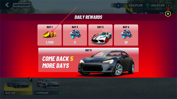 1、在游戏中新手将会有五天的登录奖励,每日可上线领取金币钻石车辆等奖励。