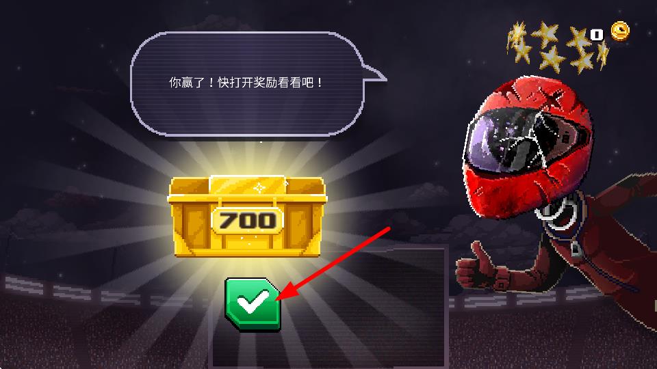 3、点击绿色对勾按键,可领取胜利奖励,获取金币等资源,用于来升级车辆或解锁新的车辆。