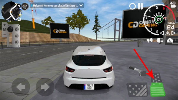2、进入驾驶场景后,通过右侧的加速按键控制车辆前进,同时留意界面的速度仪表盘,根据路况调整加速节奏,避免车辆失控。