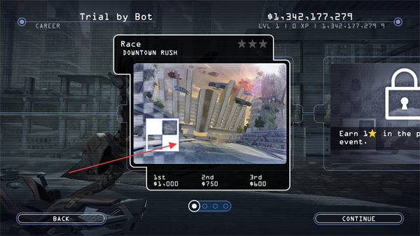 2、进入关卡后,在右上角的俩个设置中可以设定骑手的装备和颜色。