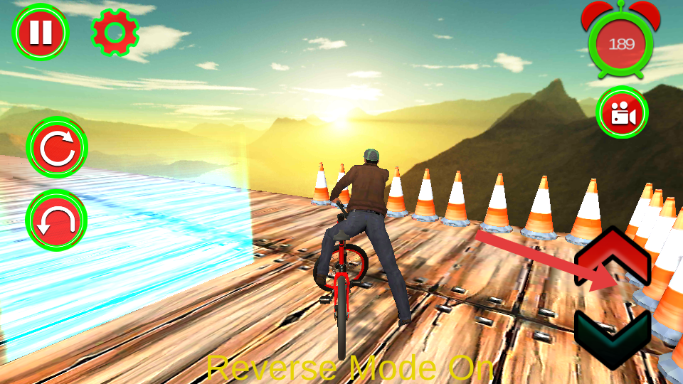 2、面对赛道上的锥形桶障碍,通过灵活操控方向,使自行车巧妙避开锥形桶,持续向任务的目标推进。