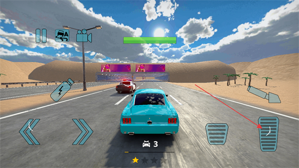 2、点击加速按键提升车速,超越前方车辆,提升排名。