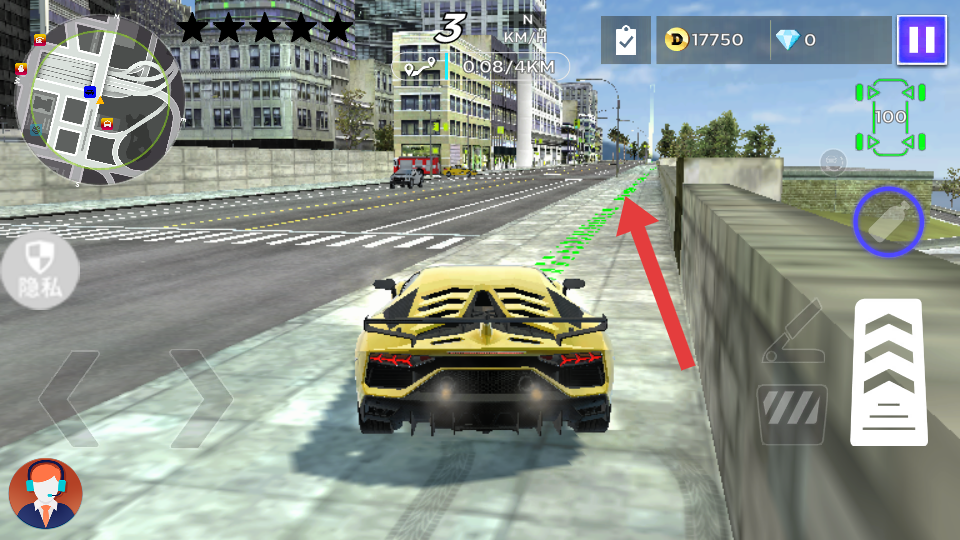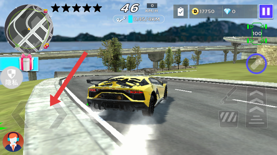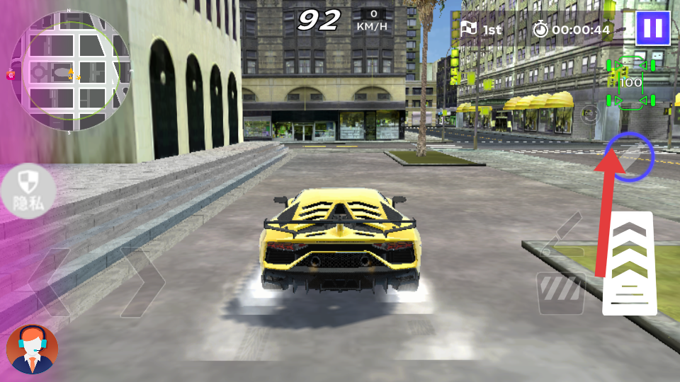 3、通过左侧方向键控制车辆的左右转向,躲避障碍物、适应弯道;右侧加速键控制车辆加速,提升行驶速度。