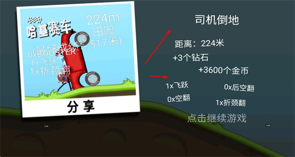 2、积累金币资源,升级赛车引擎等部件,提升赛车性能,增强爬坡、飞跃能力。