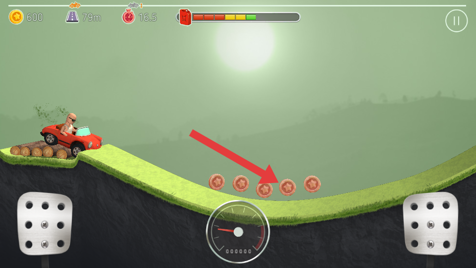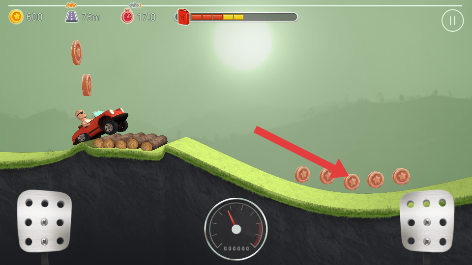 2、核心竞速操作:通过左右两侧操控按钮控制车辆转向与行进,根据山路弯道、坡度等地形变化调整操作节奏,避开障碍、保持车速,全力向山顶冲刺。