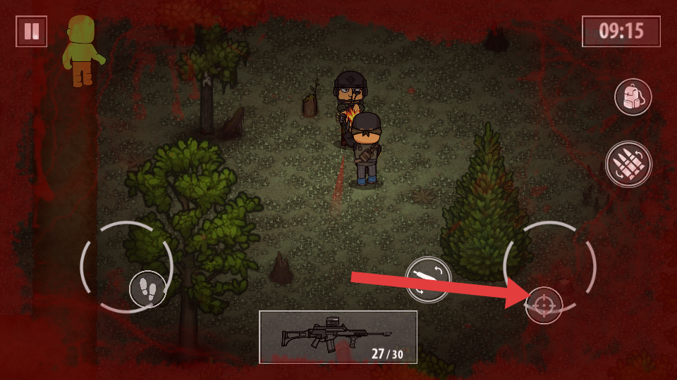 2、探索过程中遇到敌人如丧尸时,若未持有武器,利用像素场景中的树木、岩石等地形遮挡,快速绕至安全区域。