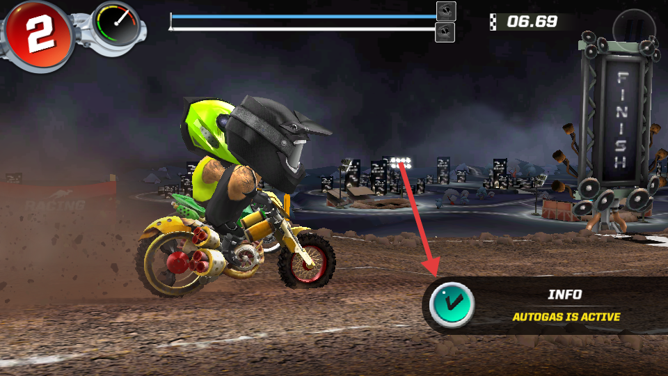 1、点击屏幕右侧实现氮气加速,左侧控制刹车漂移。
