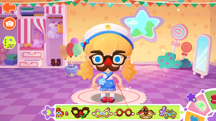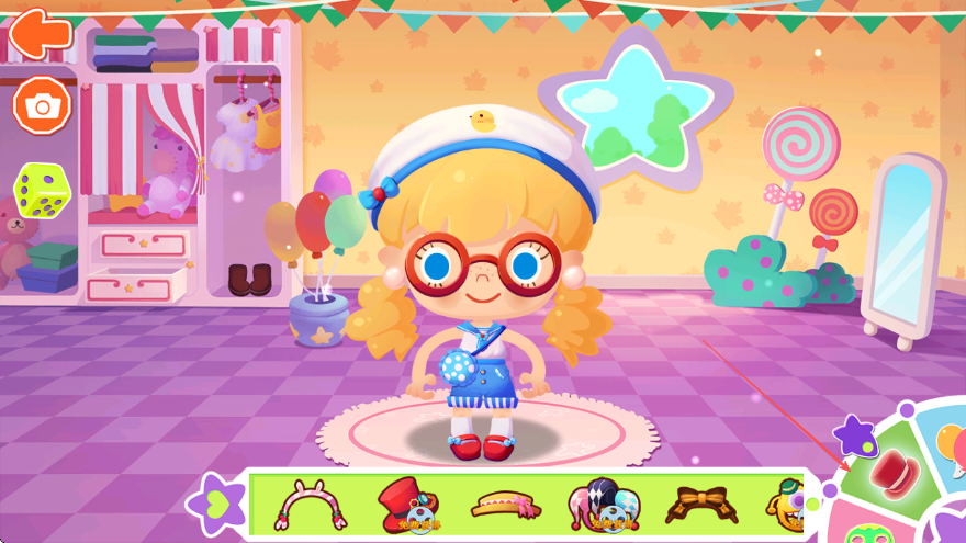 1、进入游戏,看到可爱角色,点击下方装饰栏,选择眼镜类饰品为角色换装。