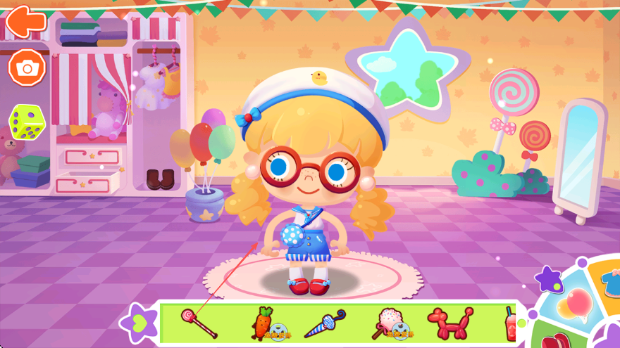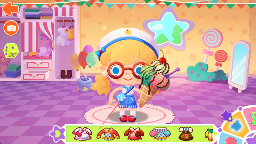 3、在装饰栏里找到手持物类别,选择棒棒糖、冰淇淋等道具让角色手持。