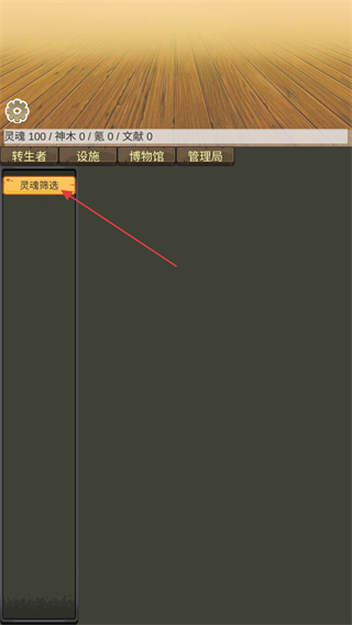 1、进入游戏主界面,点击灵魂筛选可启动转生者创建流程,当前资源显示会显示在界面上方。