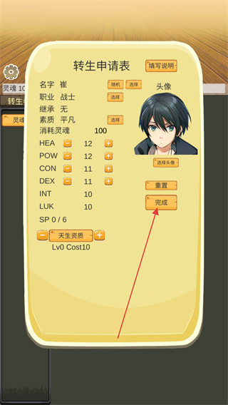 3、在转生申请表中确认信息后,点击完成按钮,即可完成本次转生者的创建操作。