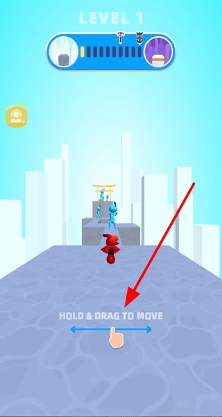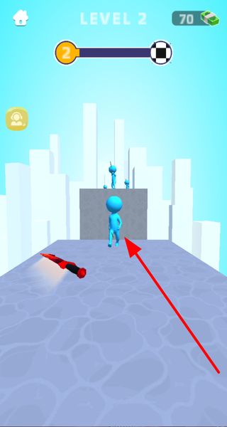 2、关卡开局攻击蓝色小人,用刀具击中蓝色小人,完成关卡的击杀目标,获取分数和奖励。