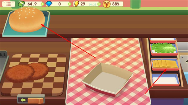 美食制作种类多样,可制作汉堡、饮品等多种美食。每种美食的制作流程不同,需选择合适的食材进行搭配,如制作汉堡需组合面包等食材,满足不同顾客的美食需求。