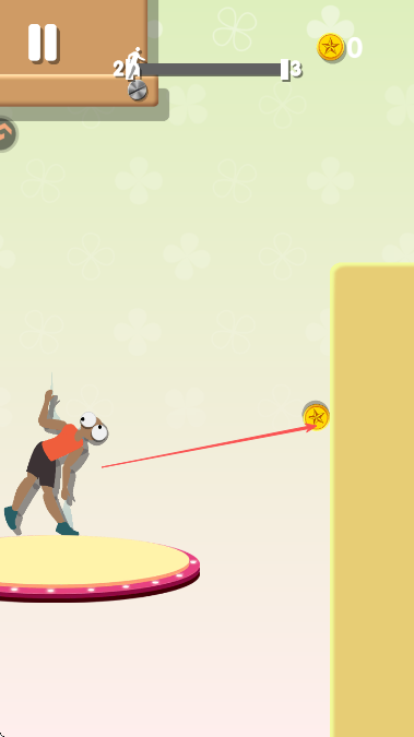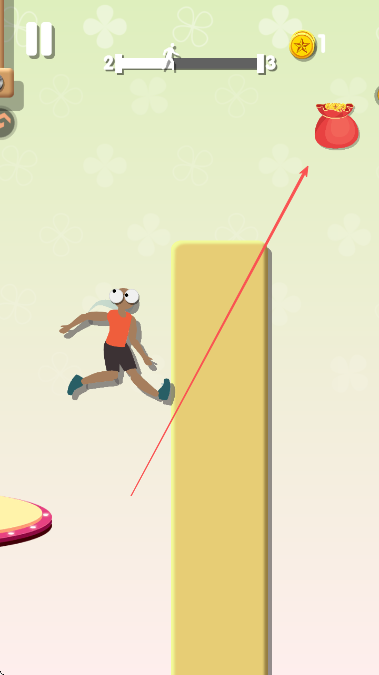 1、游戏开始后,操控角色在蹦床上跳跃,利用蹦床弹力获取更高高度。
