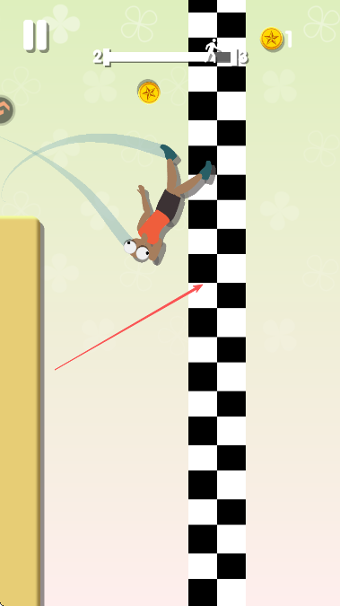 2、在空中时,控制角色向有金币的方向移动,收集金币增加分数。