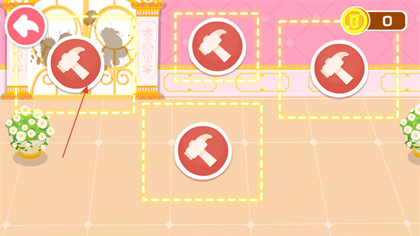 2、点击大厅内的红色锤子按钮进行大厅的清洁和装饰工作。