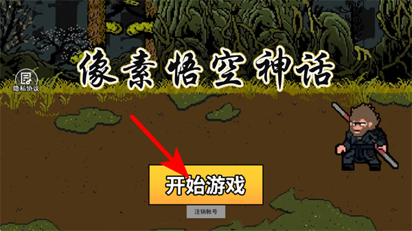 1、进入游戏界面后,点击开始游戏按钮开启像素悟空神话关卡,这是进入游戏的关键操作,准确点击才能进入冒险场景。