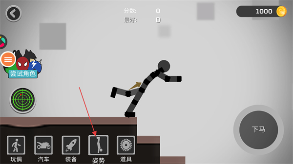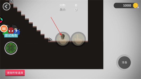 2、在下马前我们需要布置道具,在火柴人下坠的过程中对他造成伤害。