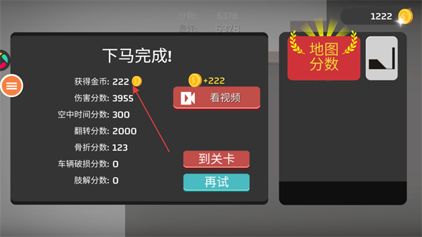 4、下马完成后,会根据关卡内对火柴人造成的伤害分数进行金币的获取。