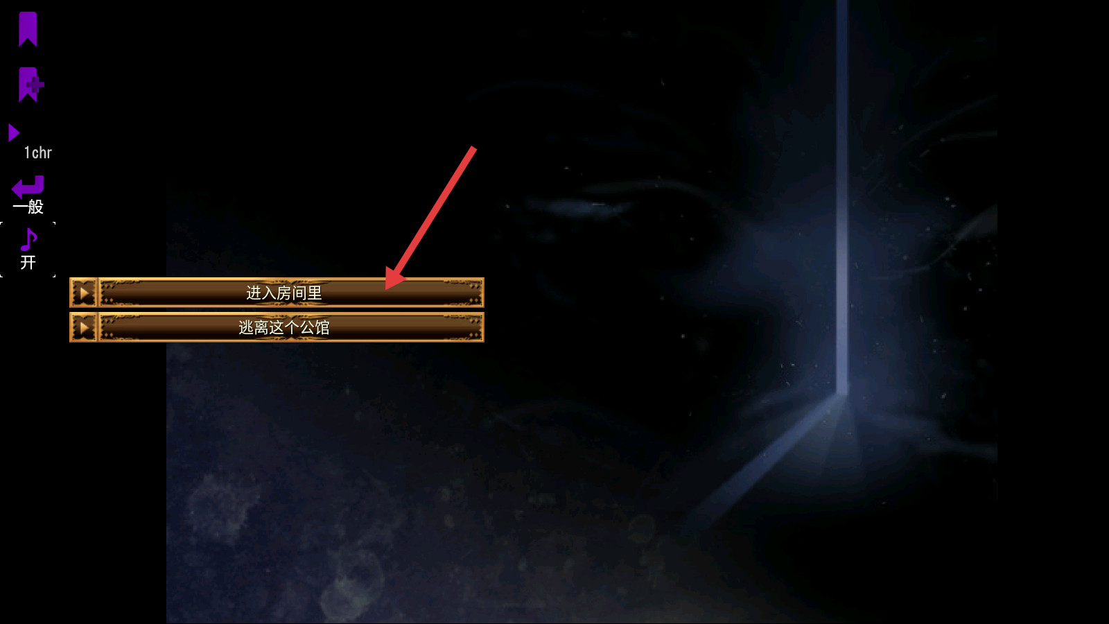 4、面对房间入口,出现进入房间里和逃离这个公馆的选择,选择进入房间可深入探索剧情,则会开启不同的结局路线。