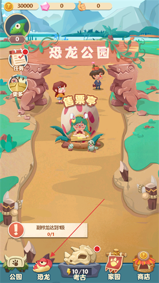 1、打开梦幻恐龙园游戏,进入游戏主页面,点击下方的恐龙图鉴。